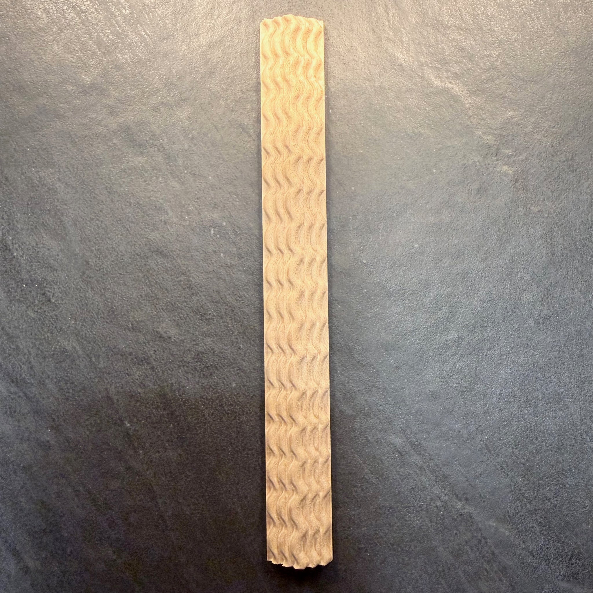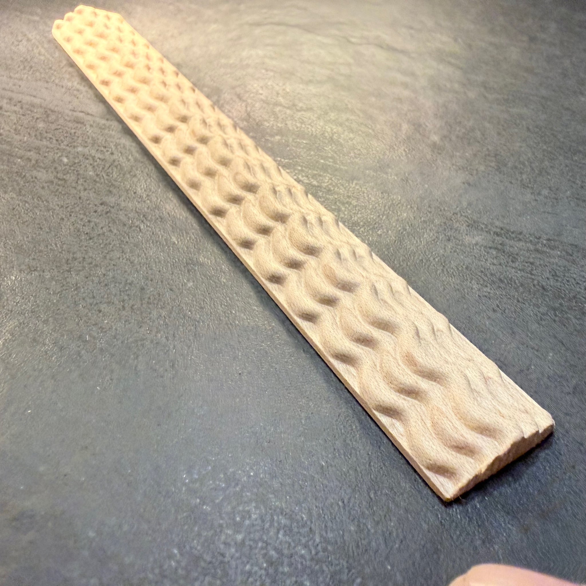 Ripple molding #5-2 is about 3/4" wide and nearly 1/4" high. Choose maple, cherry, or walnut below. Each stick is 5 feet long.