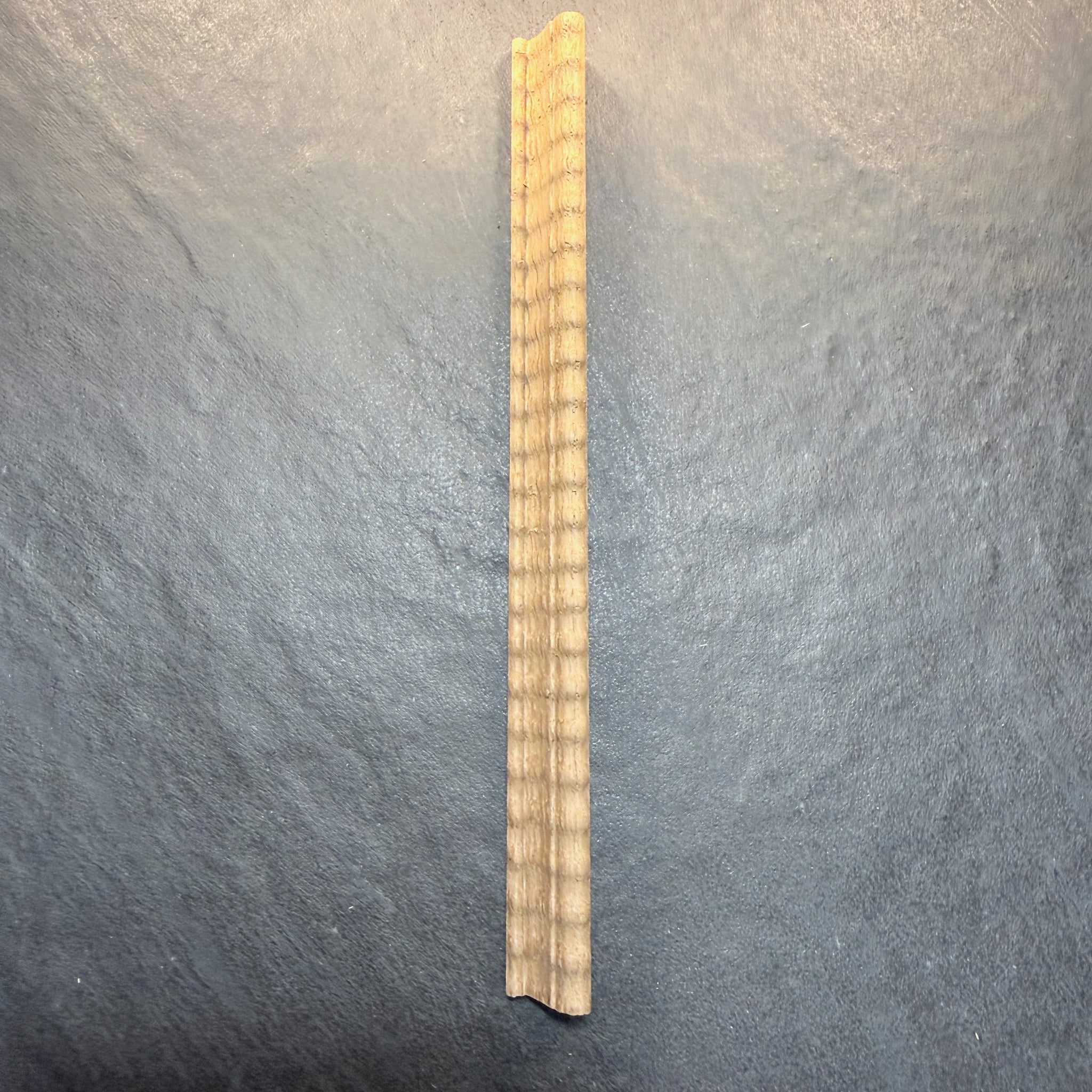 Ripple molding #9-62 is about 15/32" wide and nearly 1/2" high. Price is per 5-foot maple length. Cherry and walnut also available. Inquire here.